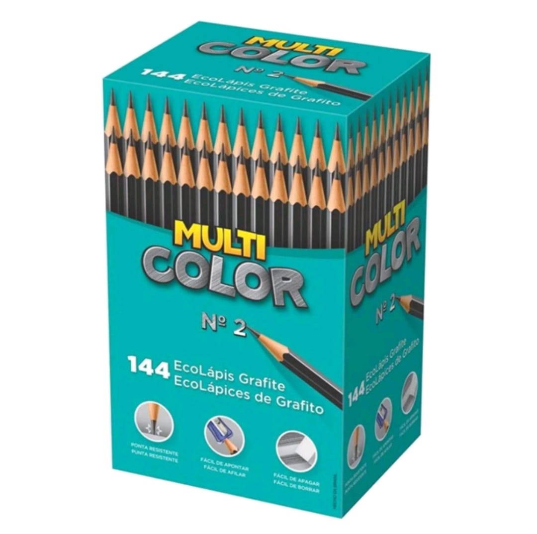 Ecolápis Multi Color Nº 2, corpo hexagonal, proporciona maior conforto e praticidade.